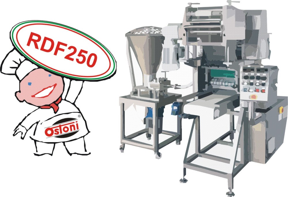 La raviolatrice RDF250 è una macchina progettata per produrre ravioli a doppia sfoglia di varie forme e peso, con sistema a stampi intercambiabili; i formati di ravioli disponibili sono visibili sul sito www.saporidellapasta.com .