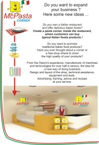 1) Consultancy for opening a pasta corner in your town, also inside a commercial center.